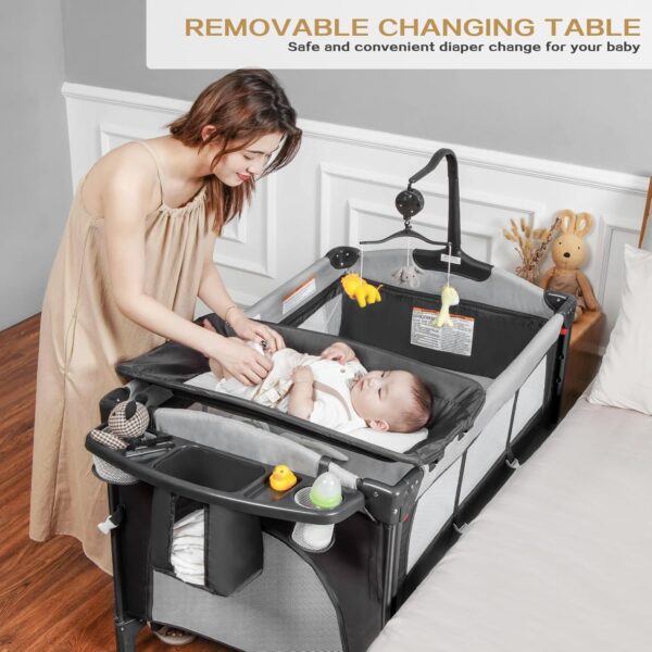 With its portable crib, bedside bassinet, and carry bag, the 5-in-1 Pack and Play is perfect for families who travel frequently. The easy setup and breakdown, combined with the carry bag, make it simple to transport and set up wherever you go.