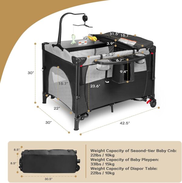 This product is a versatile and essential tool for modern parenting. Combining a portable crib, bedside bassinet, playard, diaper changer, and more, it offers exceptional convenience and functionality. With its space-saving design and travel-friendly features, this all-in-one playard is a valuable investment for families with infants and toddlers. Whether you need a reliable crib at home or a mobile solution for travel, this product meets all needs, making it an ideal choice for today’s parents.