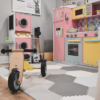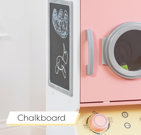 Additionally, the playset includes a chalkboard on the side, allowing kids to make a list of items such as detergent. This feature adds another layer of interactive play, encouraging children to practice writing and planning.