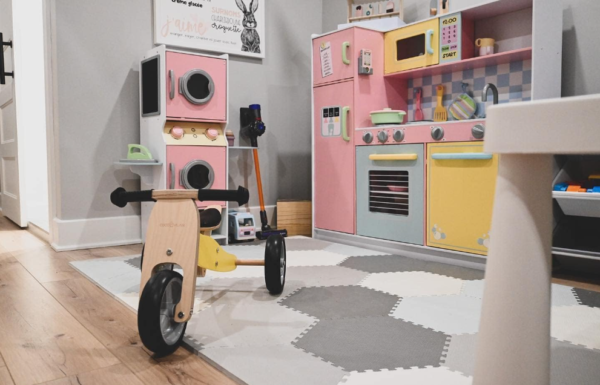 The playset, just over three feet tall, is perfect for kids, fitting easily in any room and making them feel grown-up.