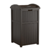 Suncast 33 Gallon Durable Plastic Hideaway Outdoor Garbage Can with Secure Lid and Wicker Design for Home Backyards, Decks, or Patios, Java Brown