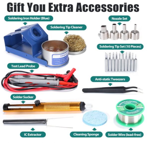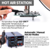 Comfort and ease of use are also prioritized in this soldering station. The ergonomic design of the soldering iron and hot air gun ensures comfortable handling during extended use. The clear digital display and intuitive controls make it easy to adjust settings and monitor performance, even for beginners.